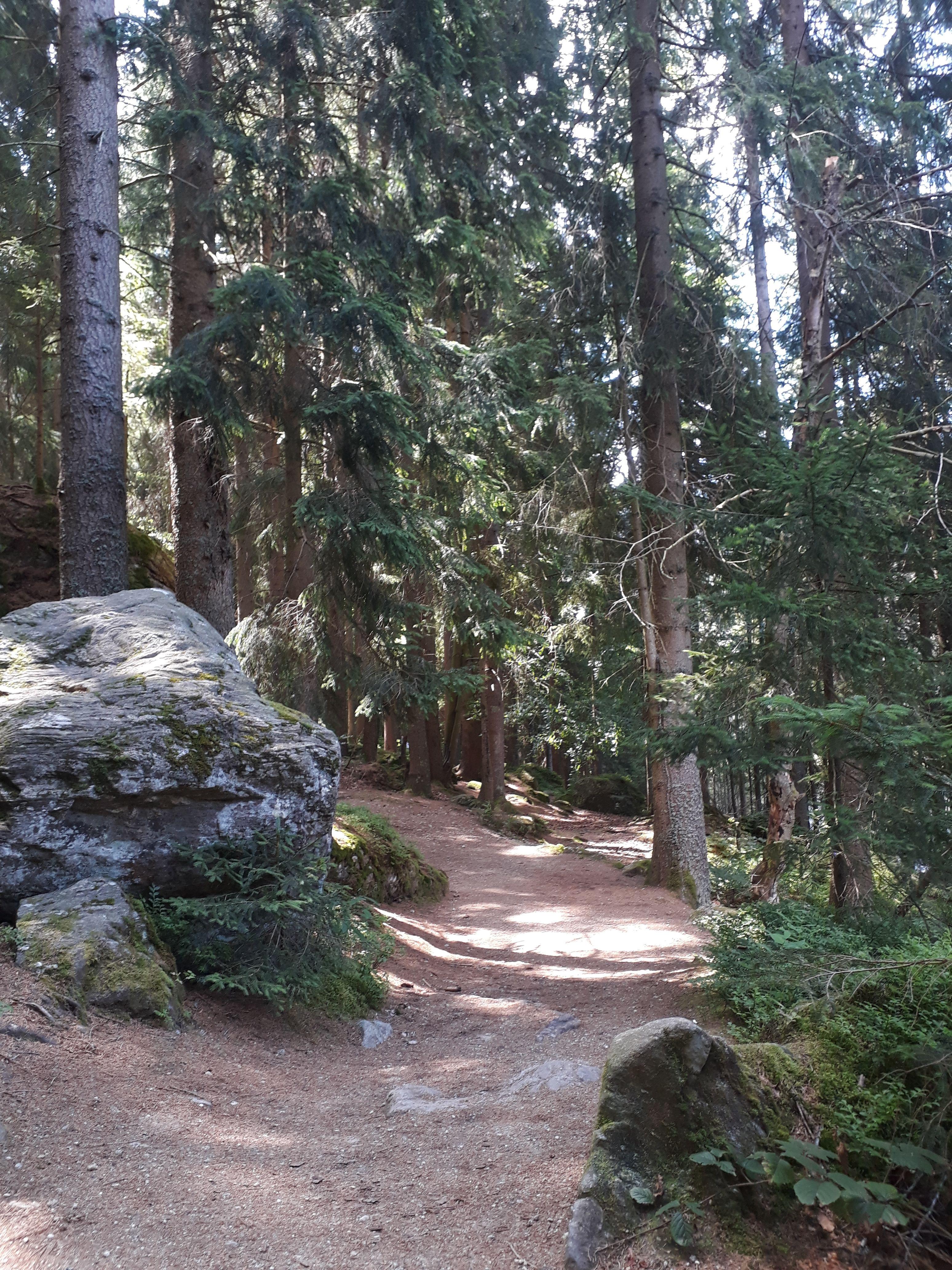 Im Juli ging's mit 8 Bewohnern aus dem Langzeitwohnbereich Richtung Bad Kötzting, und drum herum Vieles zu entdecken. Auf der Hinfahrt konnten wir schon einen Vorgeschmack auf unsere kommende Woche bekommen: wir schraubten uns rauf auf den Aussichtspunkt am Waldwipfelweg in St. Englmar und waren fasziniert von der Weite. die fast 400 Höhenmeter bis zum kleinen Arbersee musste keiner von uns zu Fuß gehen. Zum Glück fährt hier eine Bimmelbahn, die für uns die ganzen 6 km bis zum Ziel heraufschnaufen durfte. Nach einem Spaziergang rund um den See kam das Seehaus mit seinen leckeren Mittagsangeboten gerade recht. Auf der Fahrt hierher hat man uns viel über die Baumtrift und die Glasmacherei erzählt. Neugierig wie wir sind, wollten wir uns das Glasblasen aus nächster Nähe anschauen und die fertigen Gegenstände bewundern. In Arnbruck hat man uns in die Geheimnisse des Glasblasens eingeweiht. In Bodenmais bekamen wir sogar die Gelegenheit, unsere eigenen Bewässerungskugeln selbst zu blasen. Wenn man an den Bayerischen Wald denkt, darf auch ein Tierpark nicht ausgelassen werden. Ein Highlight war natürlich der Luchs, der sich gekonnt versteckt hat, so dass wir nur ein paar Umrisse sehen konnten. Stattdessen haben sich die Wölfe im Rudel präsentiert.